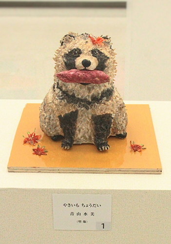 青山水美さんの塑像作品「やきいも ちょうだい」が